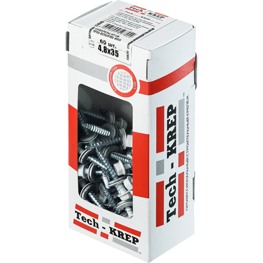Кровельный саморез Tech-Krep КР сверло 4,8х35 RAL-9003 ярко-белый 60 шт, коробка с окном 124645
