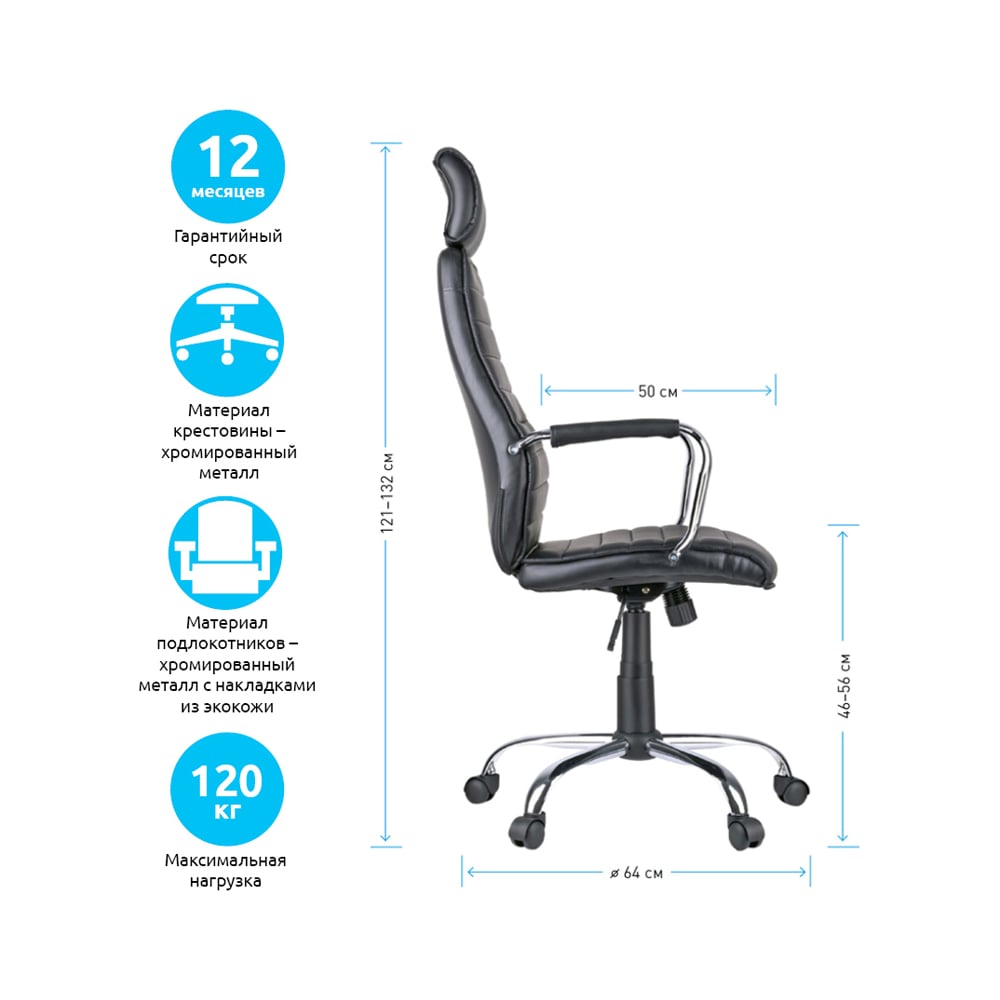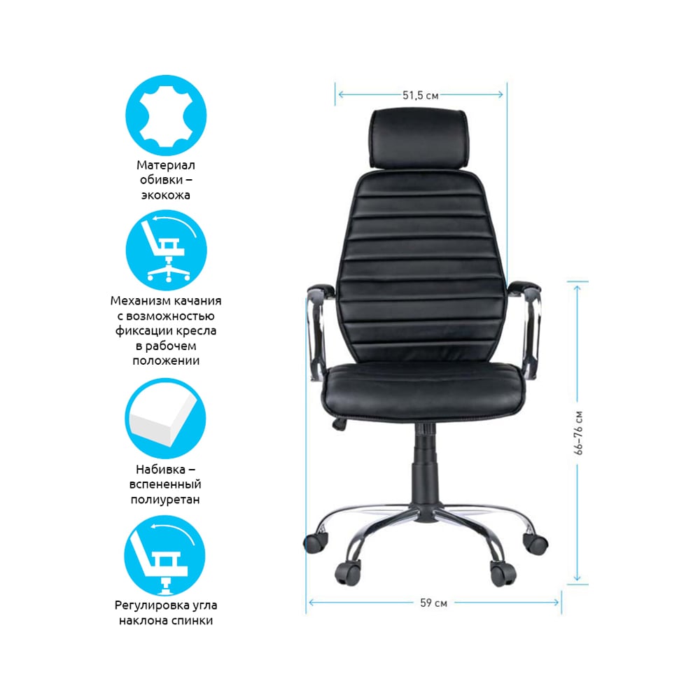 Кресло руководителя Helmi HL-E05 Event, экокожа черная, хром, механизм качания 274825