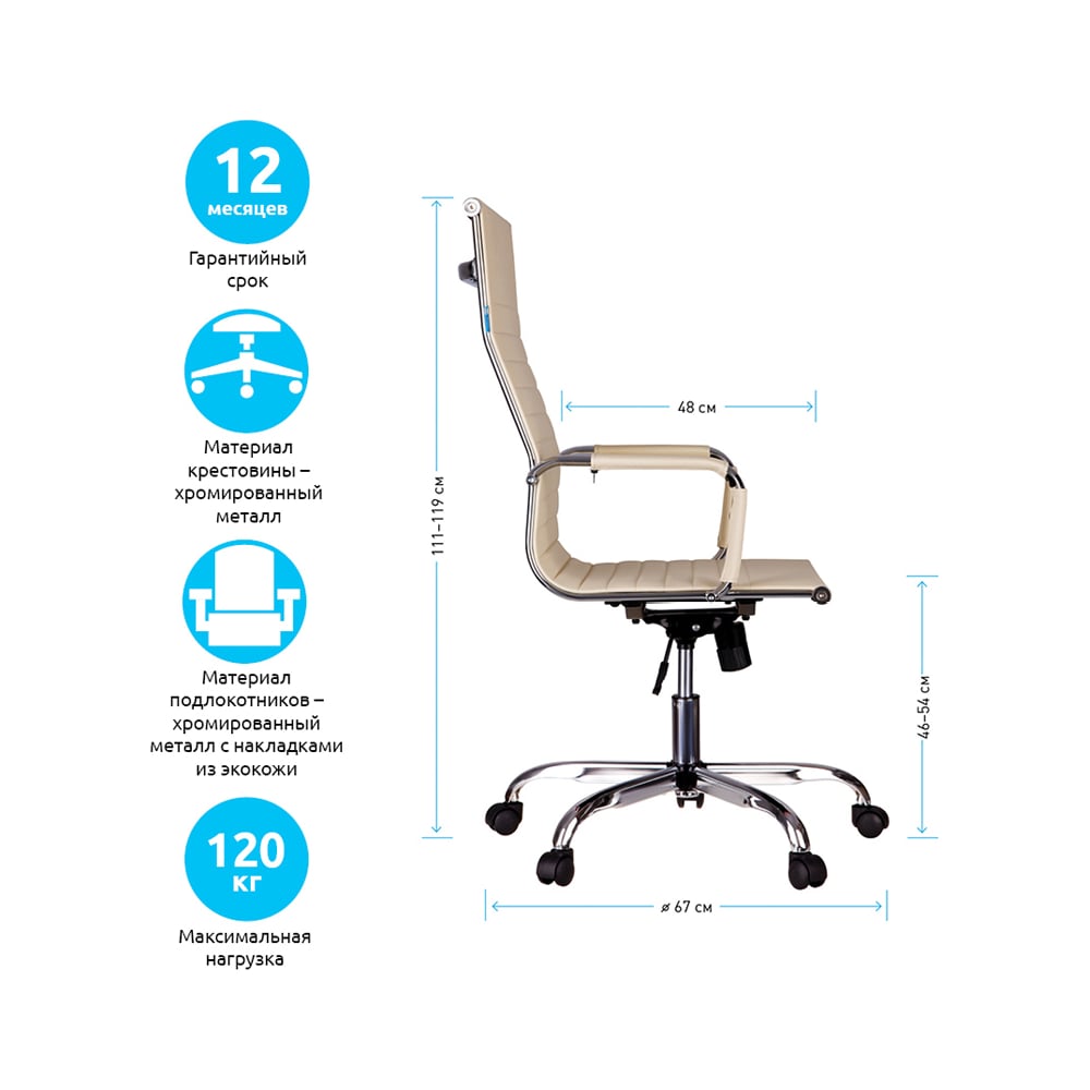 Кресло руководителя Helmi HL-E17 Slim экокожа бежевая, хром 311361