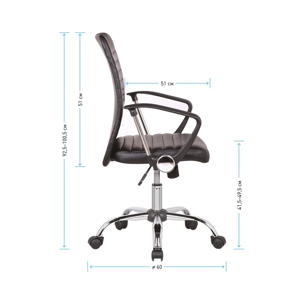Кресло оператора Helmi HL-M09 LUX, искусственная кожа черная, механизм качания, хром 306215