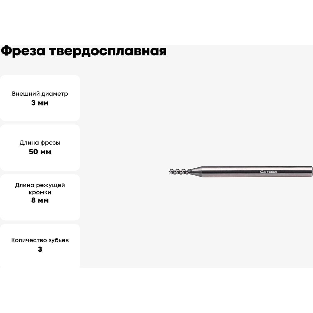 Фреза твердосплавная по алюминию ССА01-3F-03050.04 (3х4х8х50 мм) INREKO 00003187