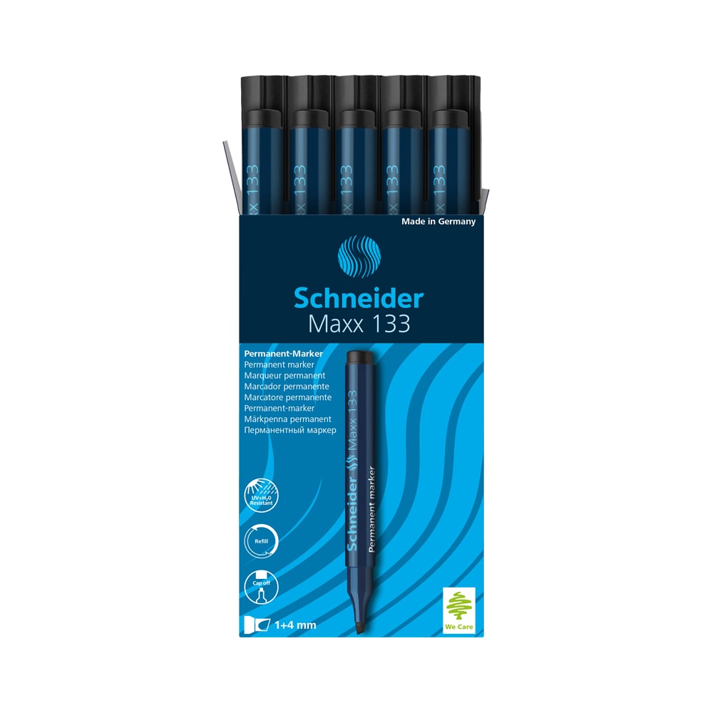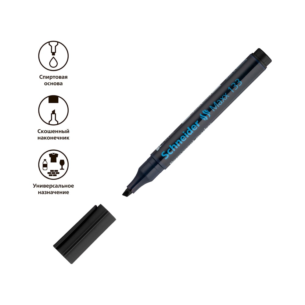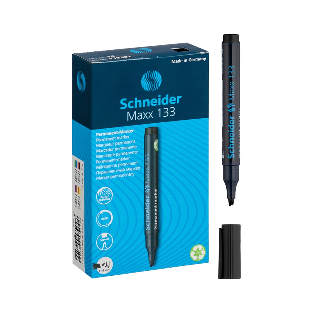 Маркер перманентный Schneider "Maxx 133" черный, скошенный, 4мм, 10 шт. 113301
