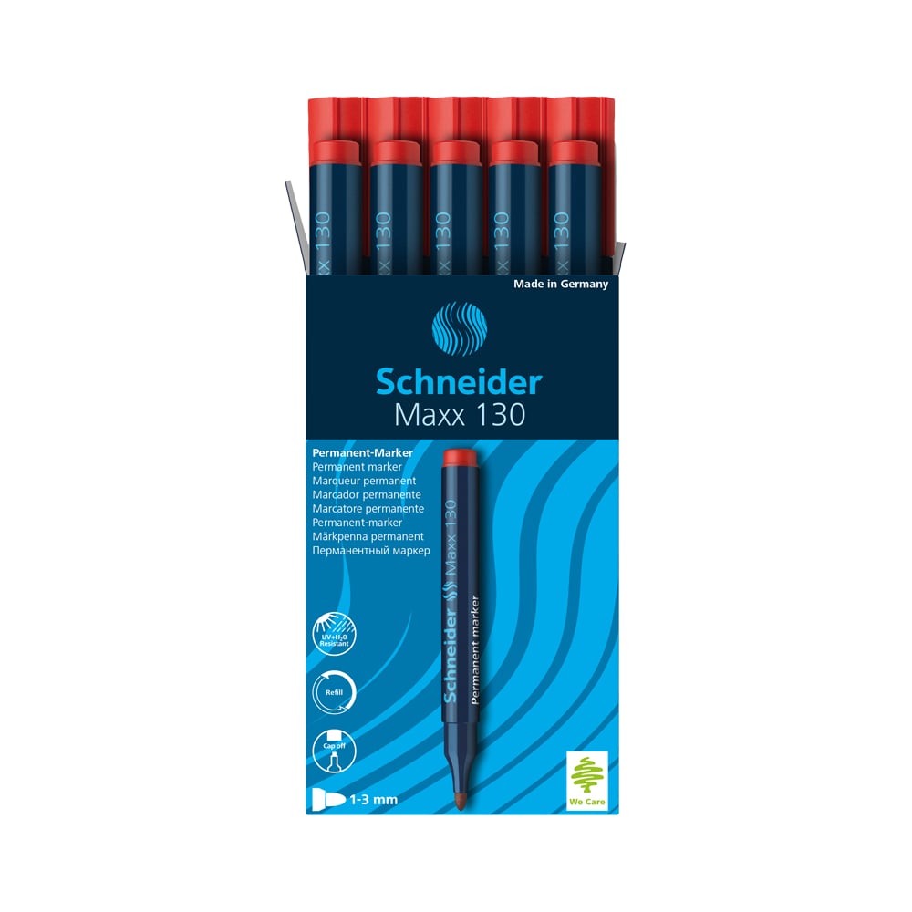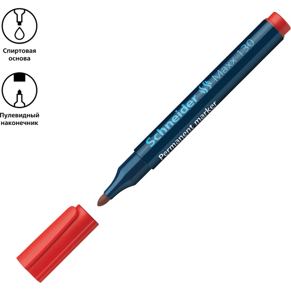 Маркер перманентный Schneider Maxx 130 красный, пулевидный, 3мм, 10 шт. 113002