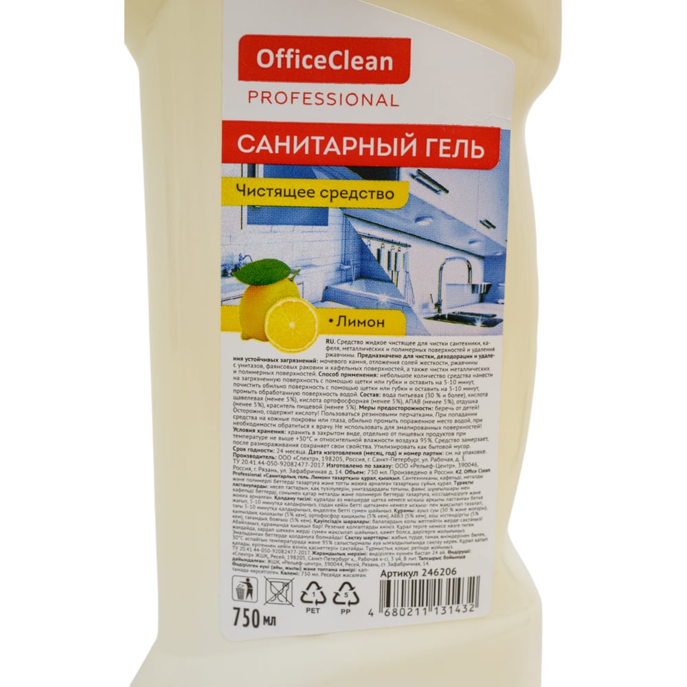 Чистящее средство OfficeClean Professional Санитарный гель 750 мл, лимон, кислота, пуш-пул 246206/П