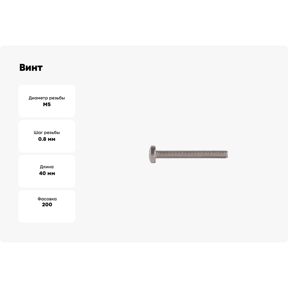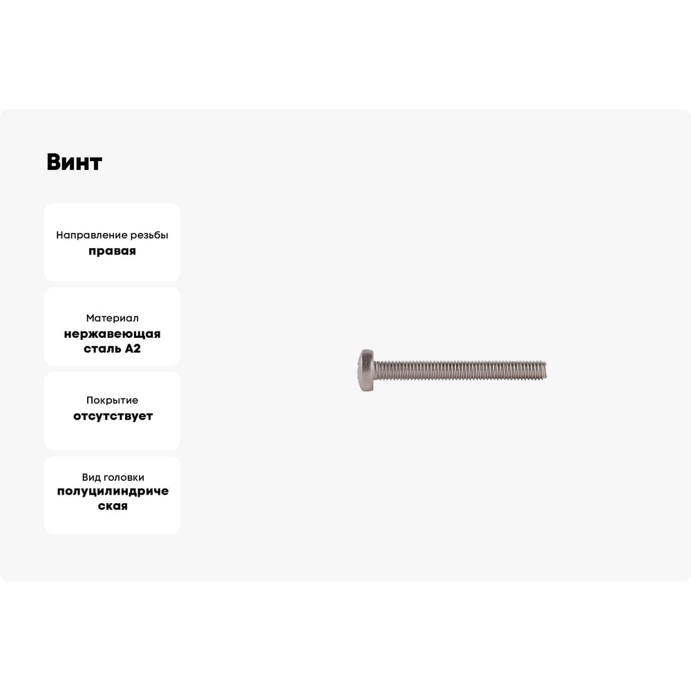 Винт КРЕП-КОМП полуцилиндрическая головка, нержавейка, DIN7985, А2, 5х40, 200 шт. вцн540