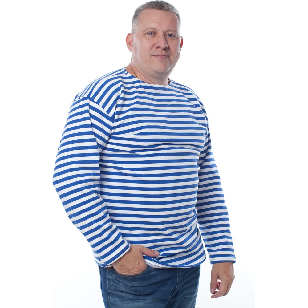 Тельняшка с начесом и длинным рукавом БЕРТА 100% хлопок, голубая полоса 702г-56-58