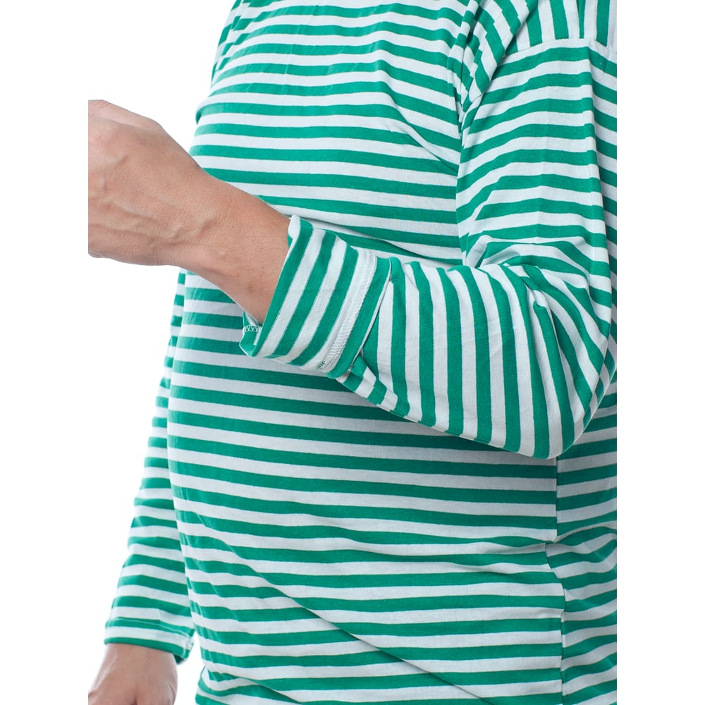 Тельняшка с длинным рукавом БЕРТА 100% хлопок, зеленая полоса 701з-48-50