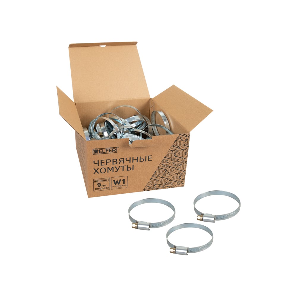 Хомут HELFER W1, 50-70 мм, оцинкованная сталь, уп. 50 шт. HF004044