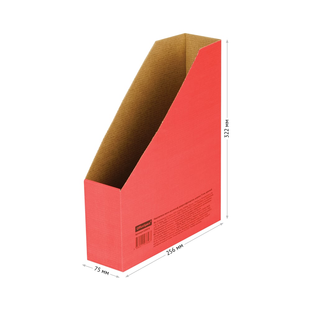 Архивный накопитель-лоток из микрогофрокартона OfficeSpace 75 мм, красный, до 700 листов 225416