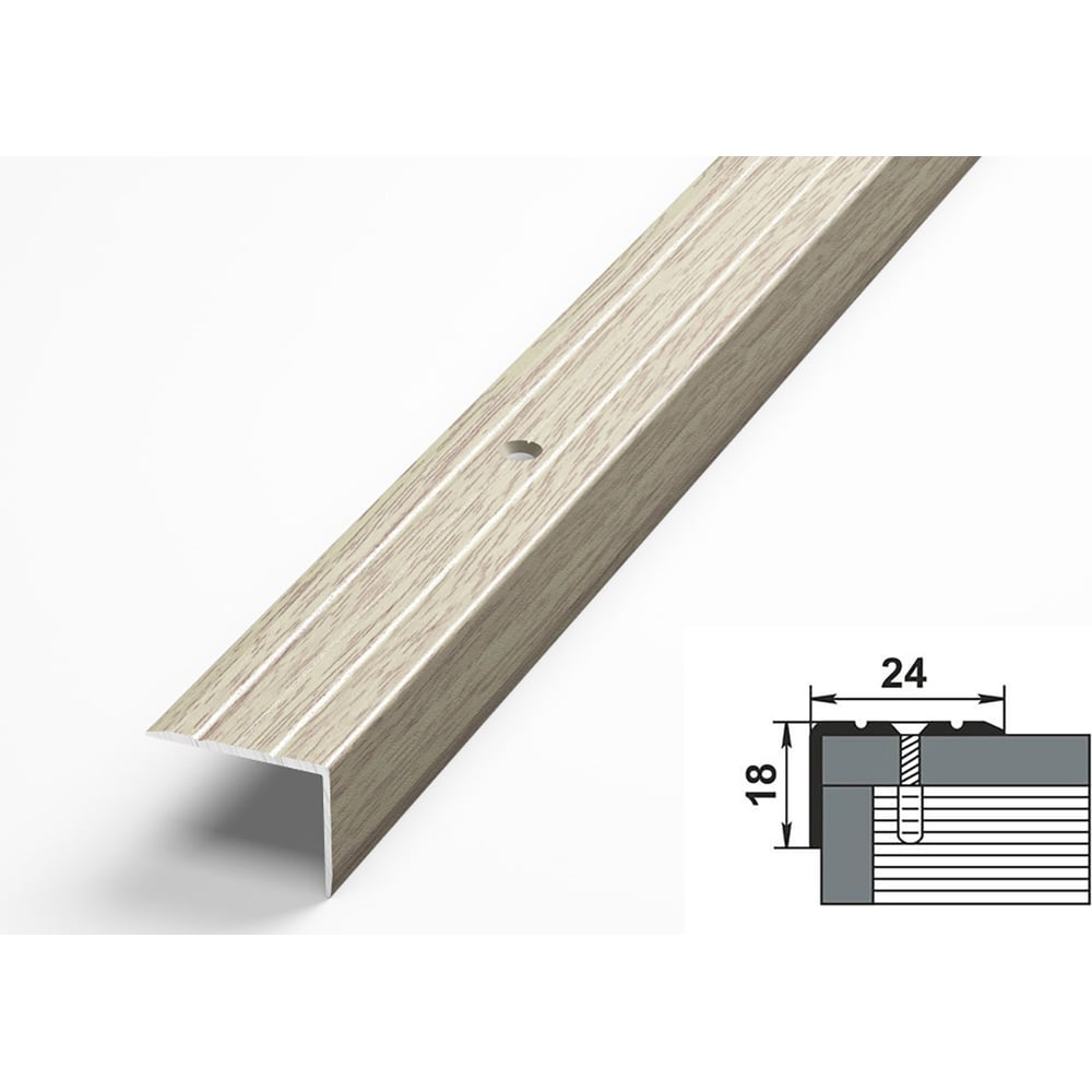 Порог угловой алюминиевый декоративный (24х18 мм, 1,8 м, Дуб беленый) ЛУКА УТ000000599