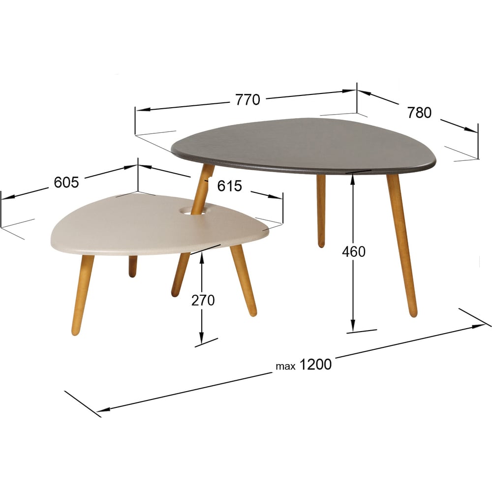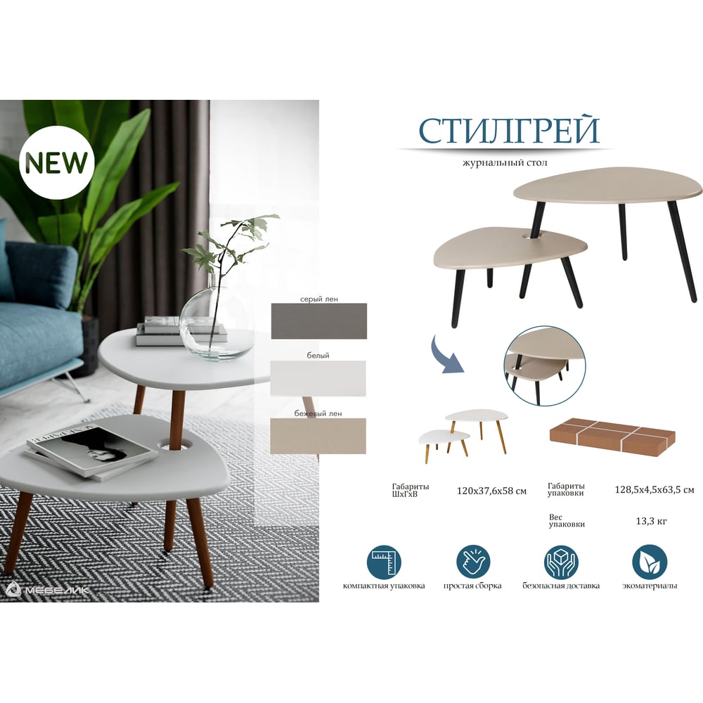 Журнальный стол Мебелик Стилгрей серый лен/бежевый лен/дуб светлый 5018