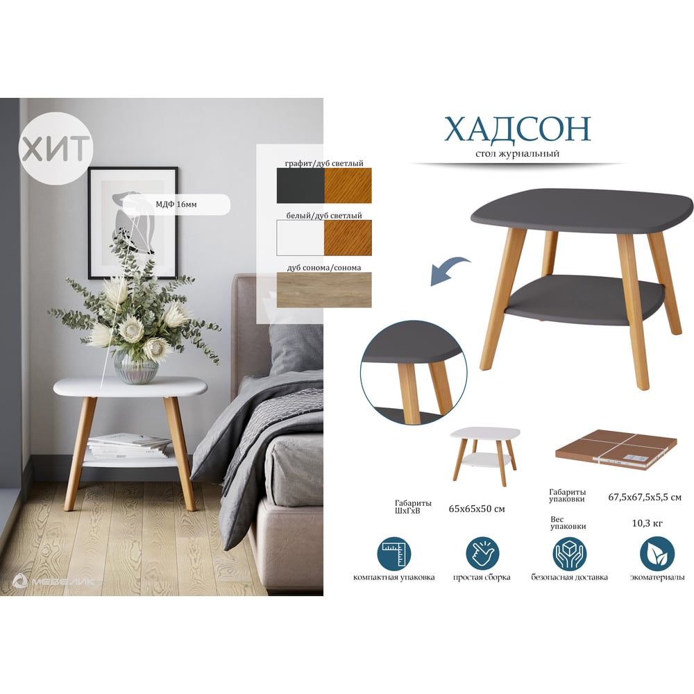 Журнальный стол Мебелик Хадсон графит/дуб светлый 6934