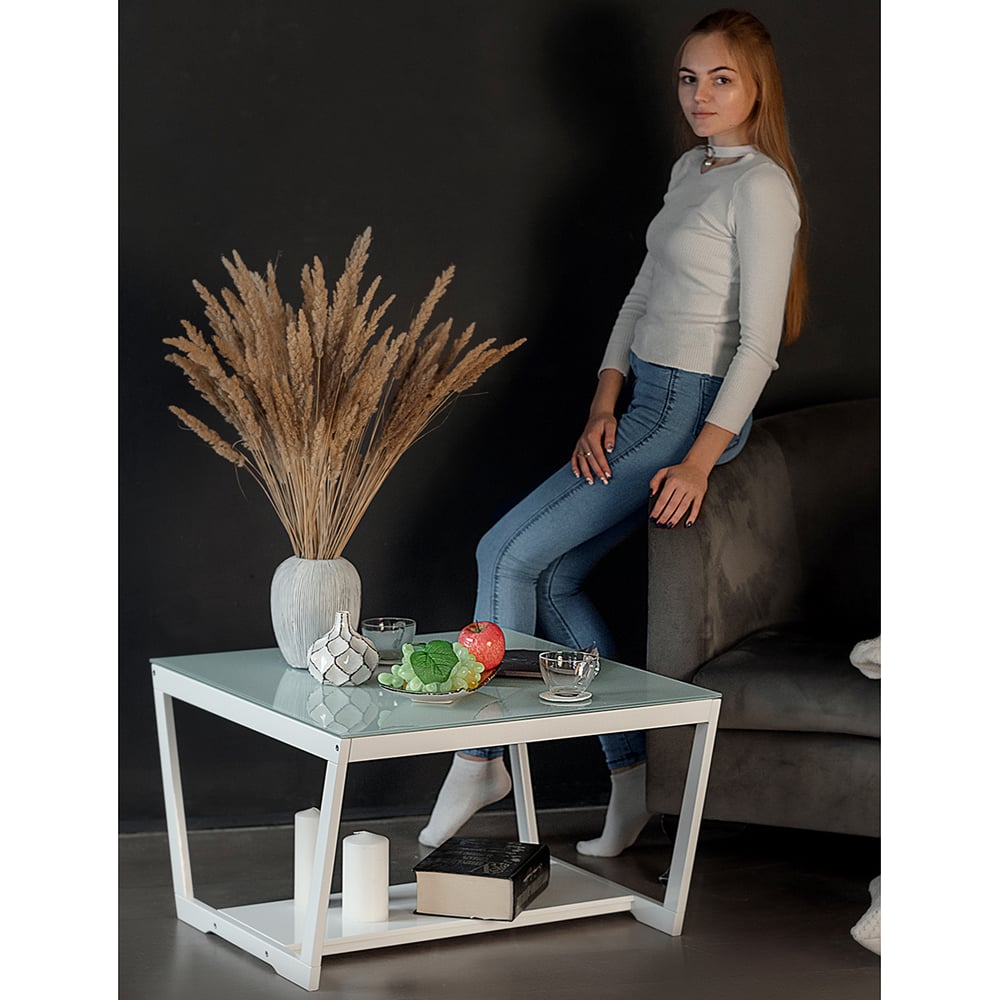 Журнальный стол Мебелик BeautyStyle 1 белый глянец/стекло белое 5275