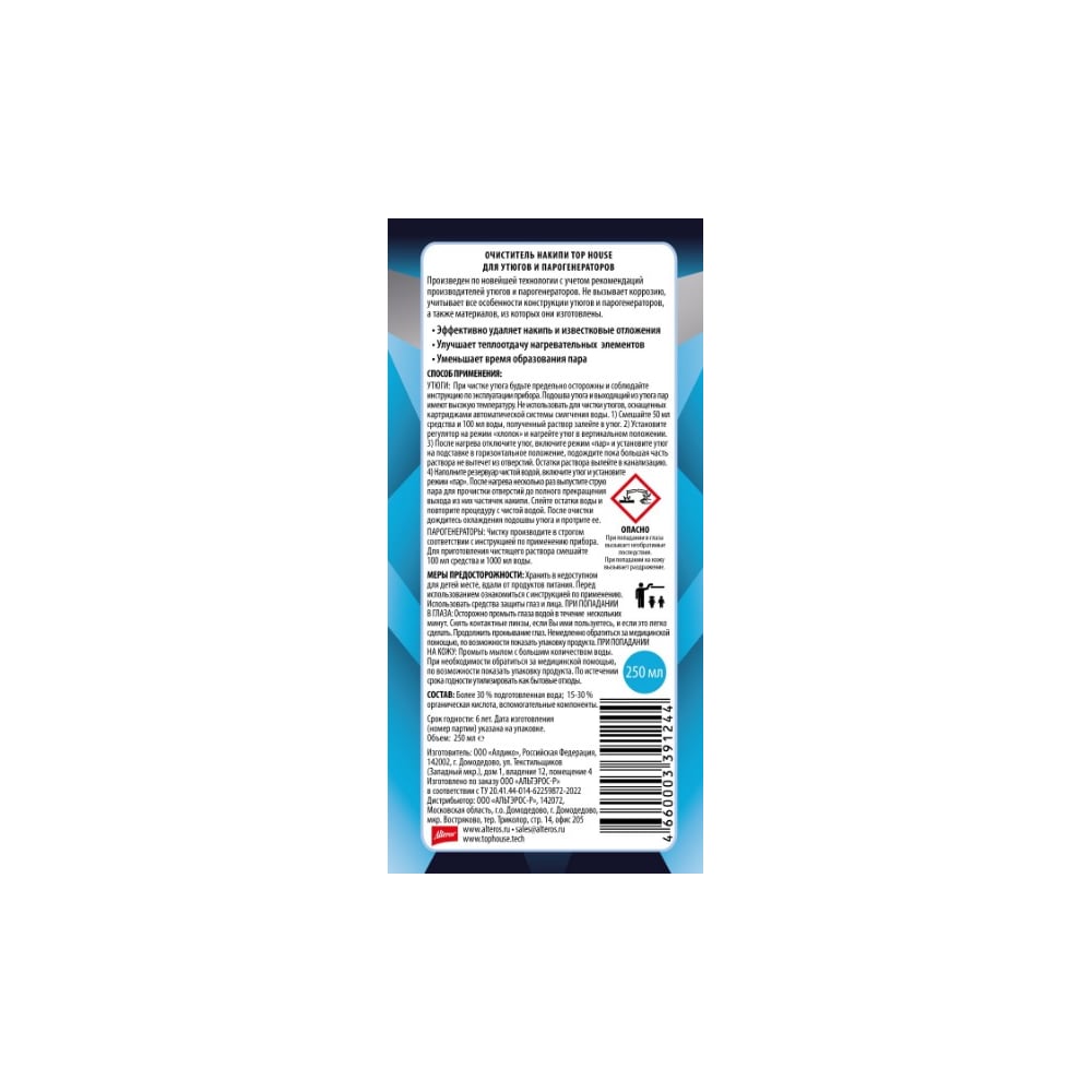 Очиститель накипи для утюгов TOP HOUSE 250 мл 391244