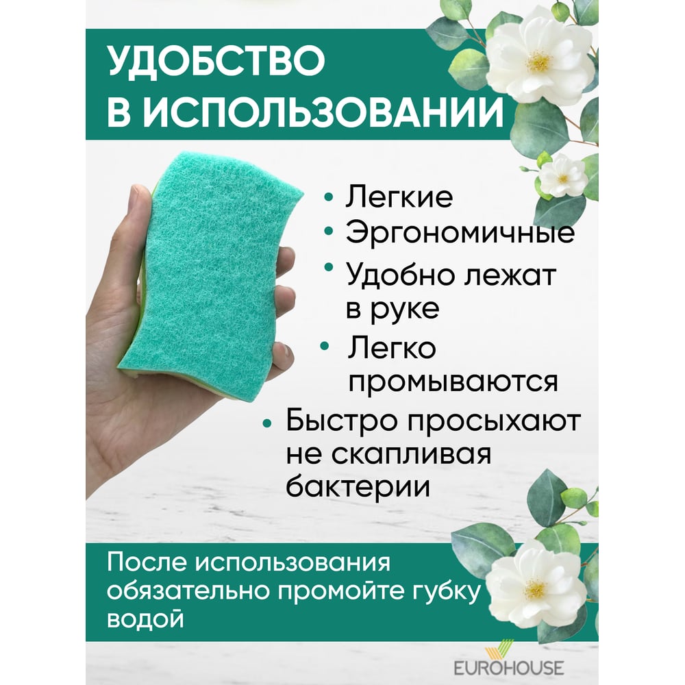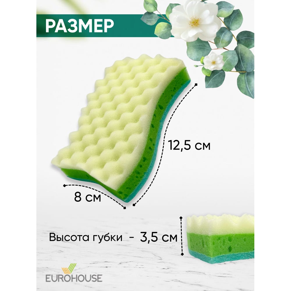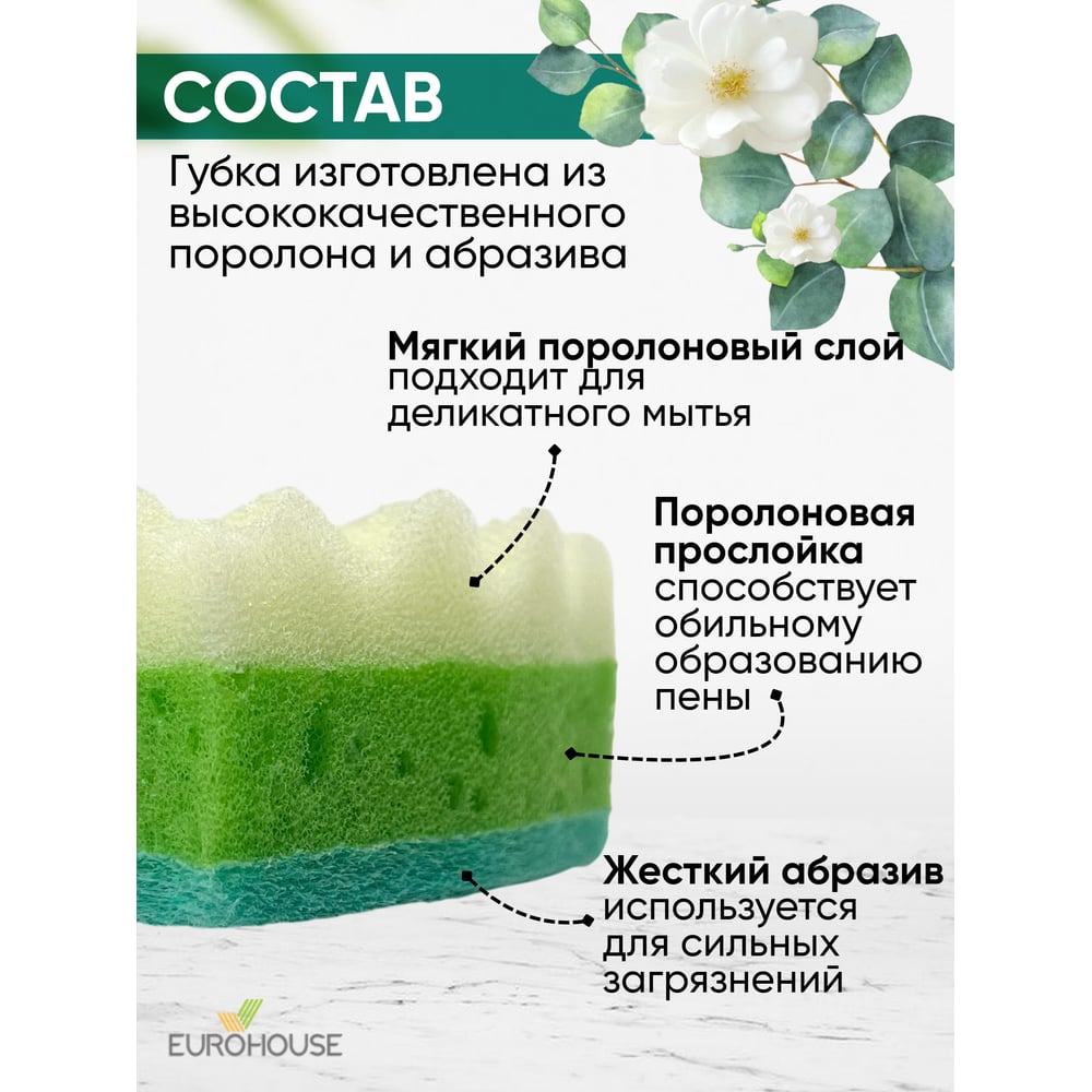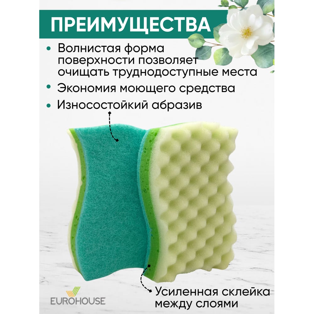Трехслойная губка для посуды EUROHOUSE 14003