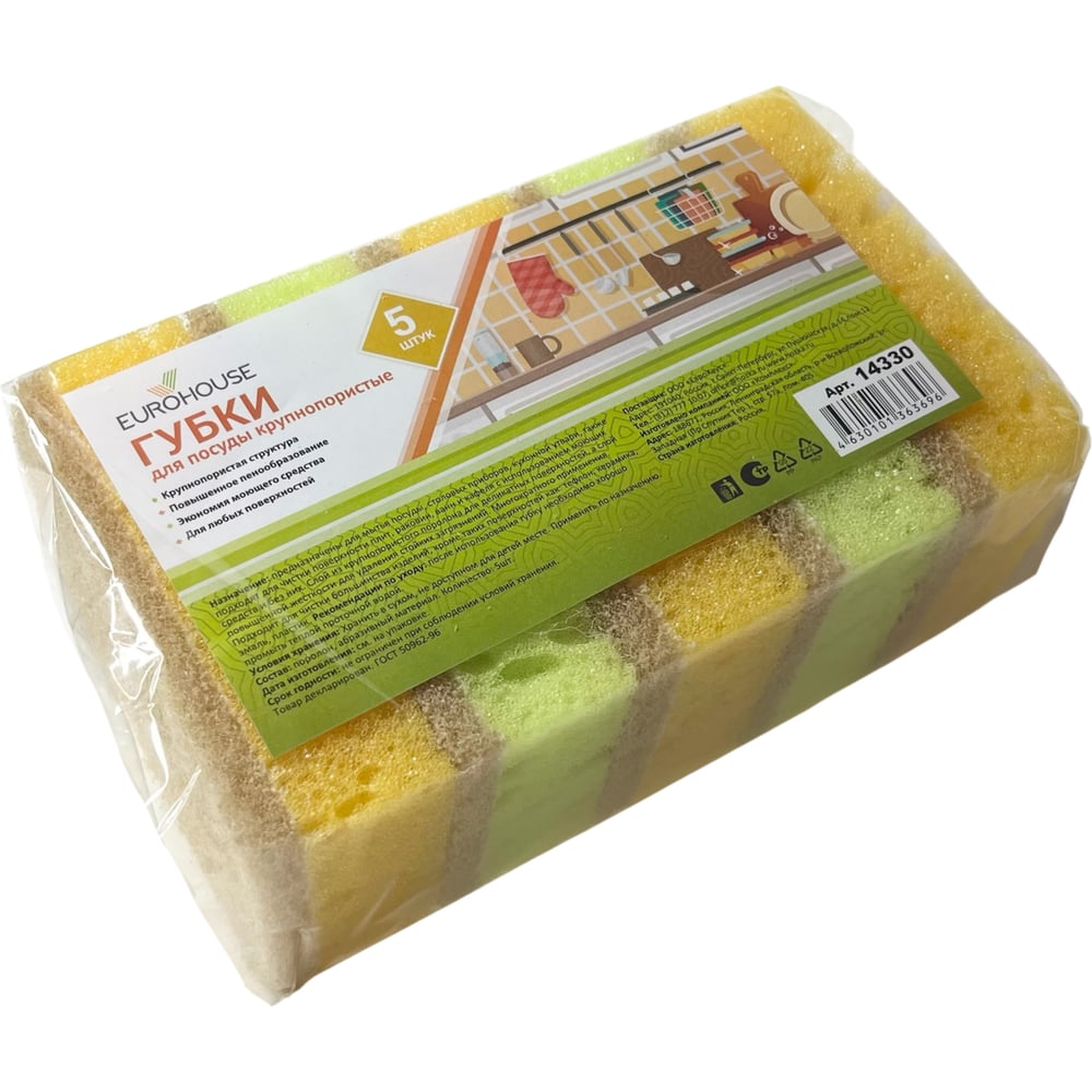 Крупнопористые губки для посуды EUROHOUSE 86х62х30 мм, 5 шт 14330