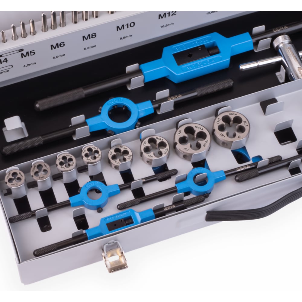 | Комплектация | сверла, метчики, плашки, набор держателей |