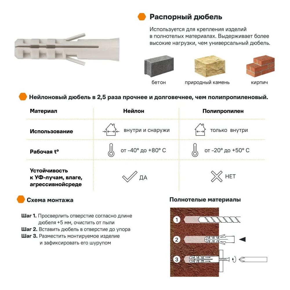 | Диаметр отверстия под дюбель | 10 мм |