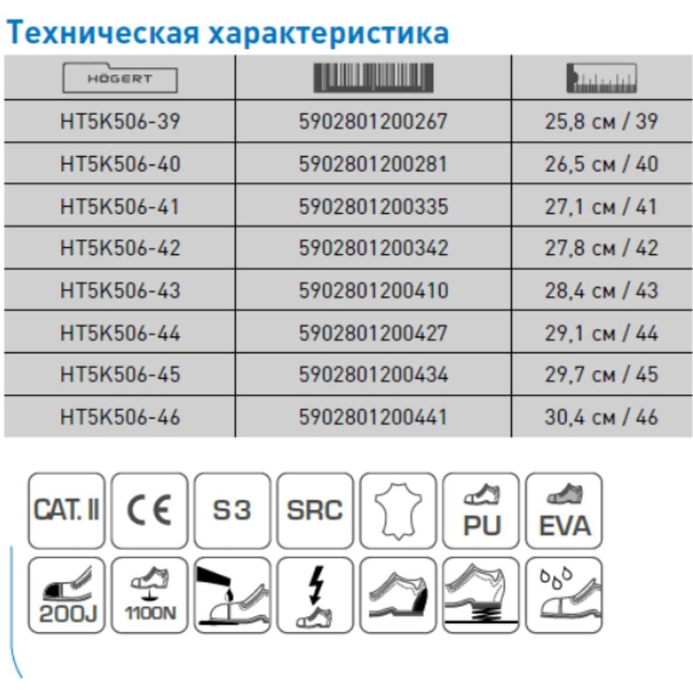 Рабочие кожаные полуботинки HOEGERT TECHNIK ZORGE, S3, SRC, металл, размер 41 HT5K506-41