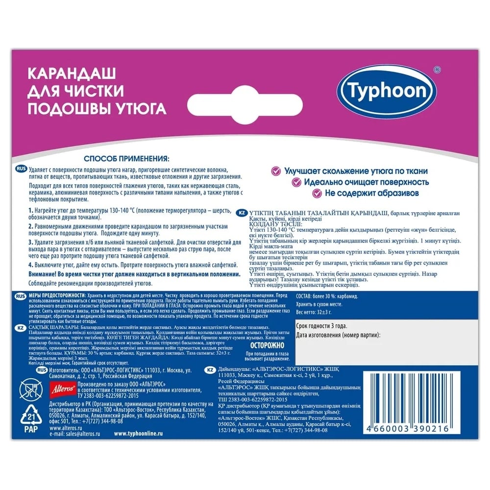 Карандаш для чистки подошвы утюга ТАЙФУН 390216