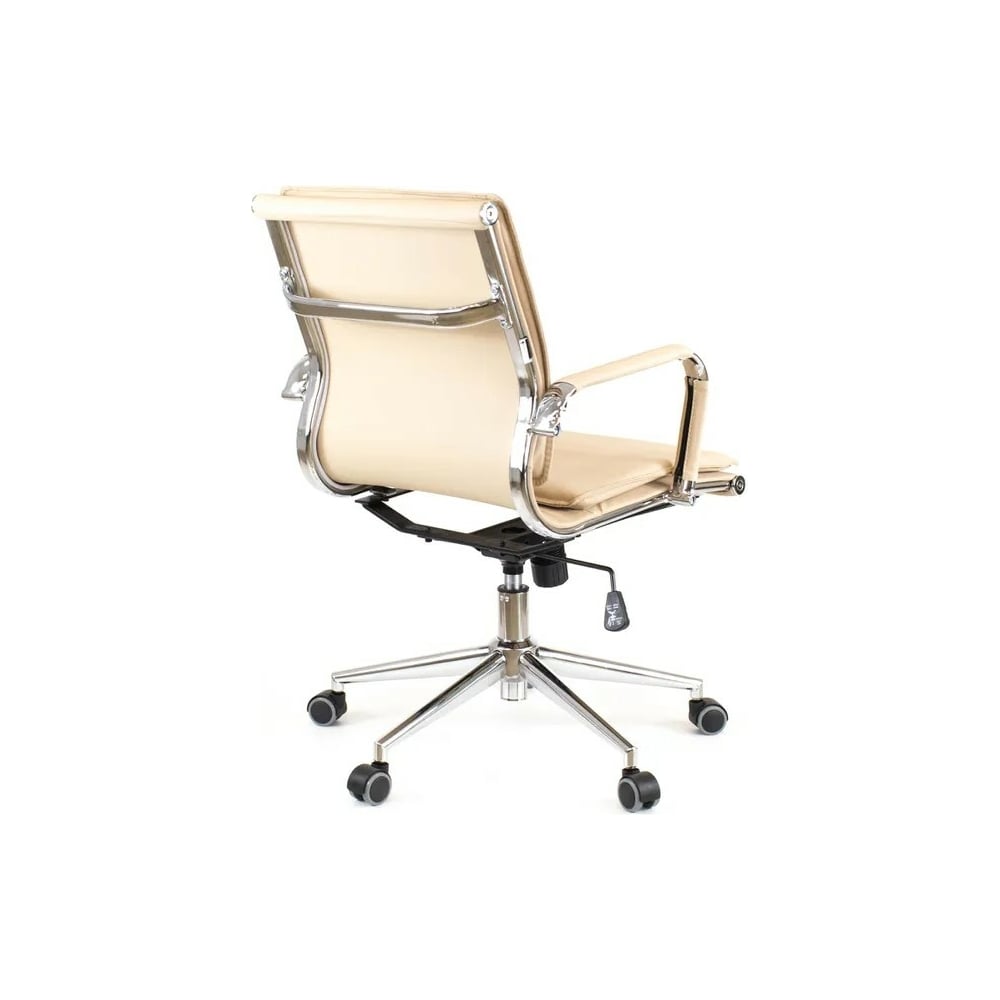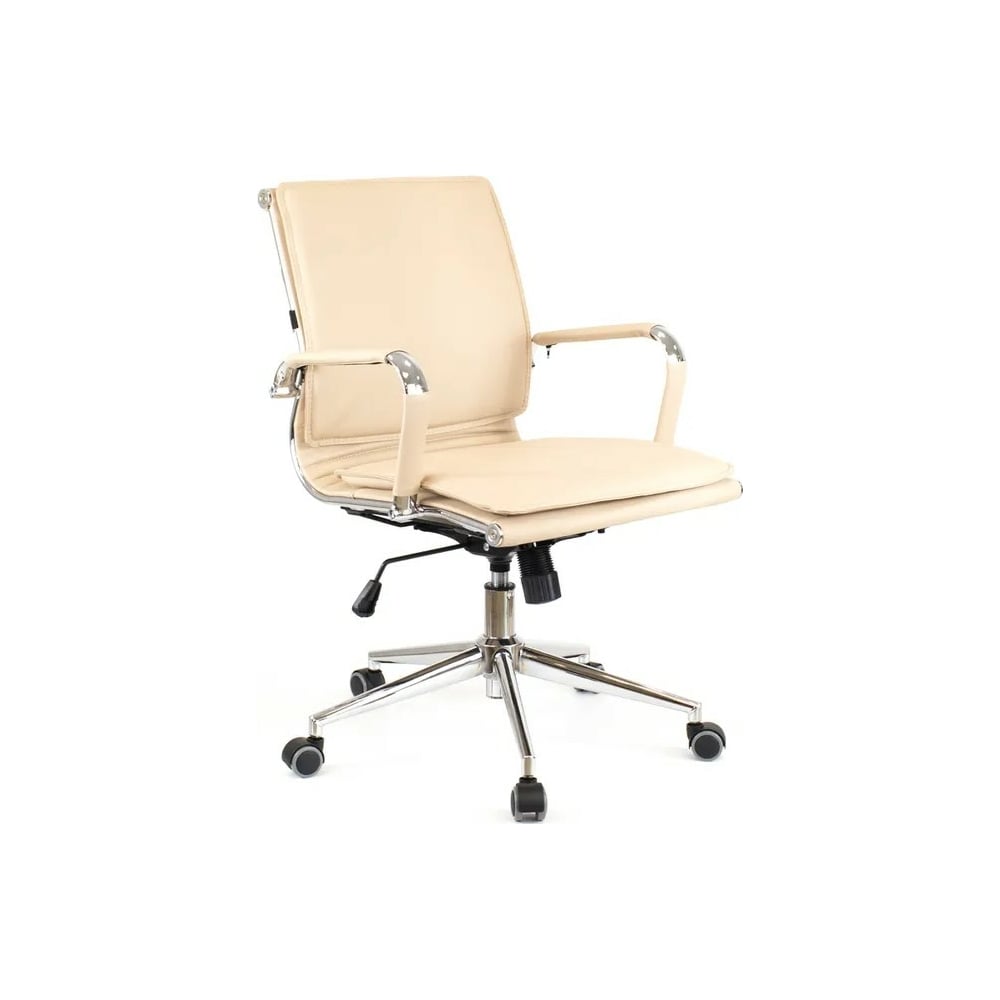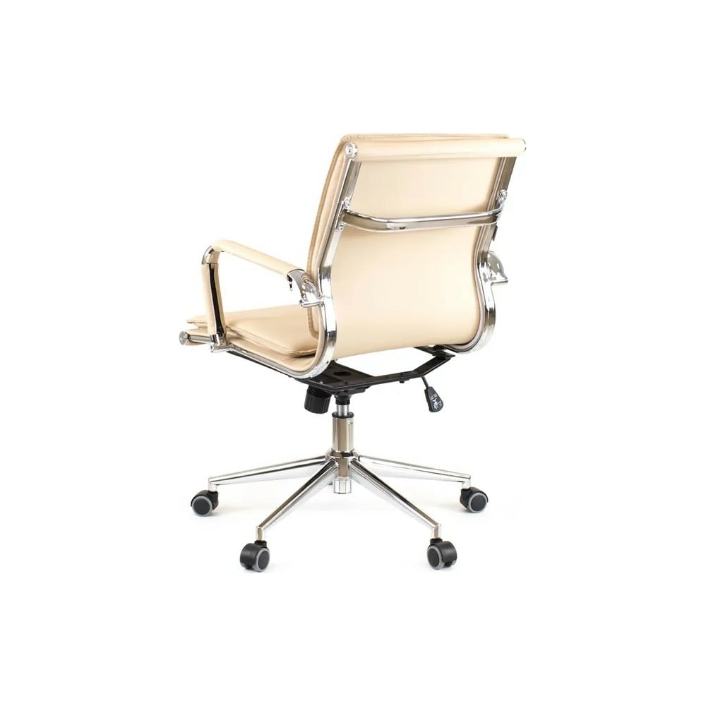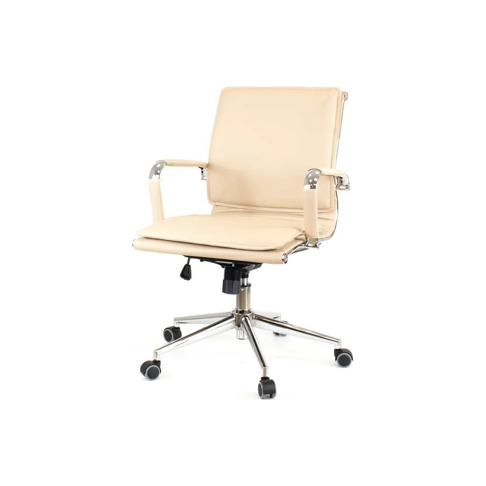 Габариты без упаковки 560x960x660 мм Регулировка высоты сиденья да Требует сборки нет Подлокотники да Подъемный механизм нет Механизм качания да Регулировка высоты спинки нет Регулировка высоты подлокотников нет Механизм вращения да Подголовник нет Регулировка наклона спинки нет Подставка для ног нет Max нагрузка 120 кг Ширина сиденья 560 мм Глубина сиденья 470 мм Ширина спинки 560 мм Высота спинки 420 мм Min высота сиденья 460 мм Мах высота сиденья 540 мм Поясничный упор нет Цвет спинки бежевый Материал крестовины металл Материал подлокотников металл/экокожа Цвет сиденья бежевый Материал обивки экокожа Ортопедическое нет