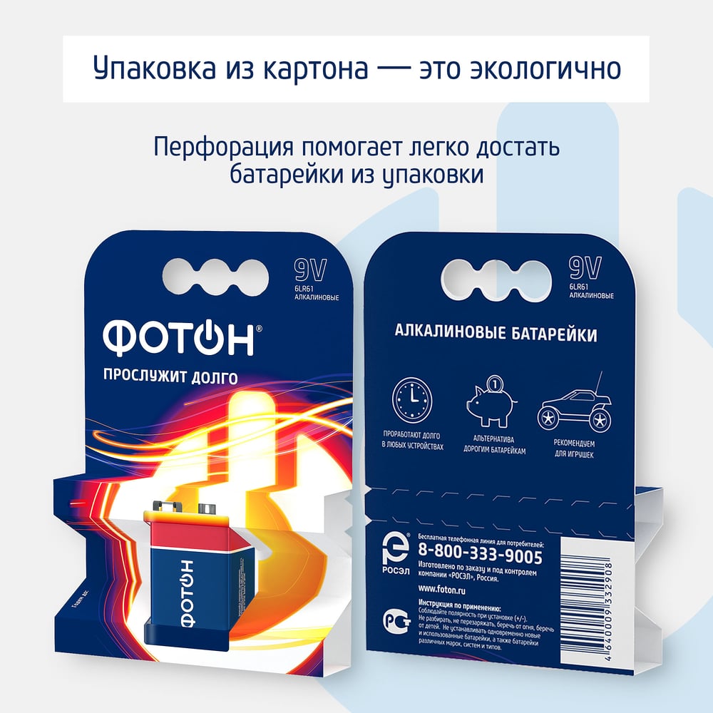 Батарейки ФОТОН 6LR61 Крона 9V 22448