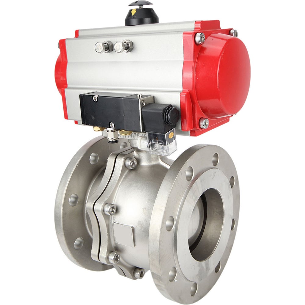 Шаровой кран DN.ru КШФП.316.200 Ду32 Ру40 с пневмоприводом, пневмораспределителем D160-02065