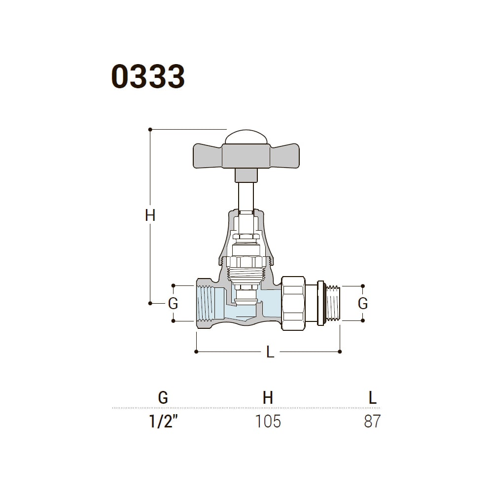 Прямой клапан для радиатора SR Rubinetterie, серия "Victoria", 1/2, цвет хром 0333-1500C000