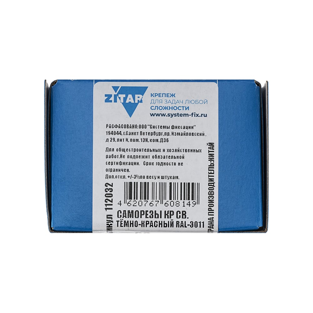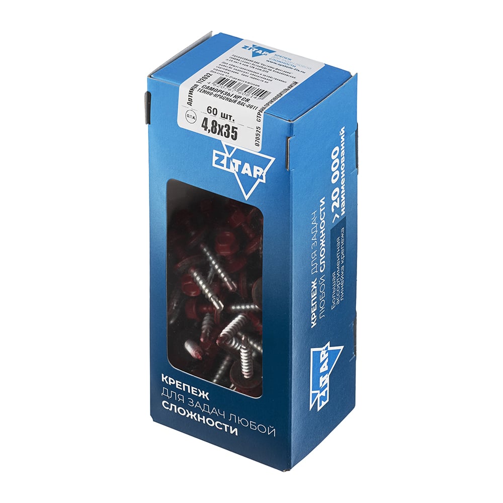 Саморез КР со сверлом 4,8x35 мм RAL-3011 темно-красный, 60 шт в коробке с окном Zitar 112032