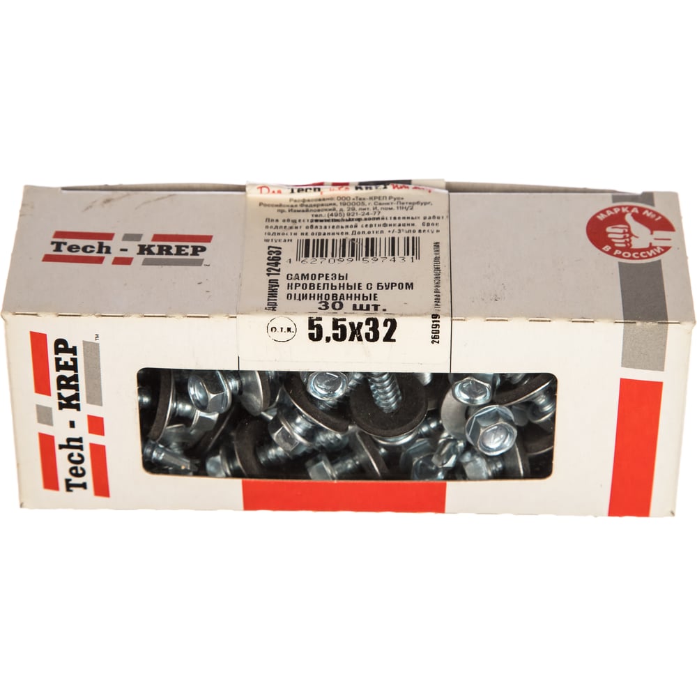Кровельный саморез Tech-Krep КР ZP сверло 5,5х32 30 шт, коробка с окном 124637