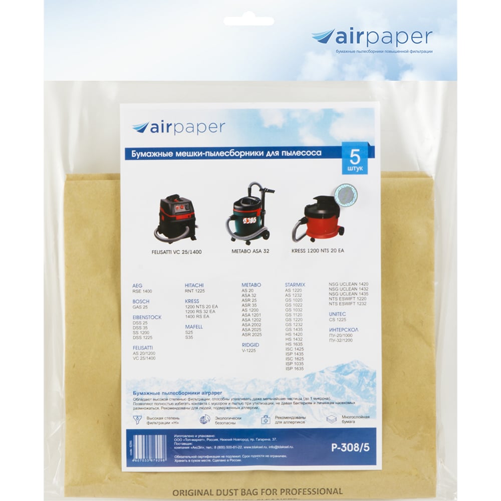 Мешок-пылесборник бумажный 5 шт. (до 36 л) AIR Paper P-308/5