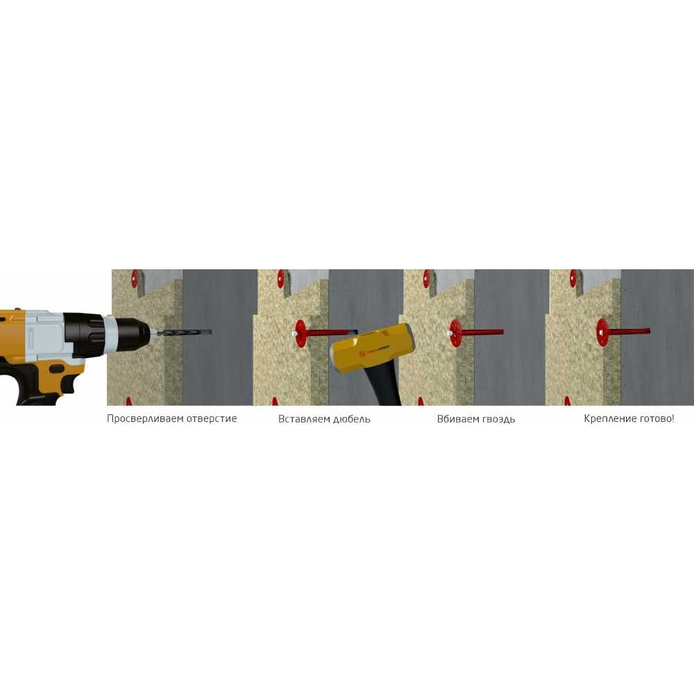 Дюбель для теплоизоляции с металлическим гвоздём с термоголовкой 10х80, 50шт - пакет Tech-Krep 124471