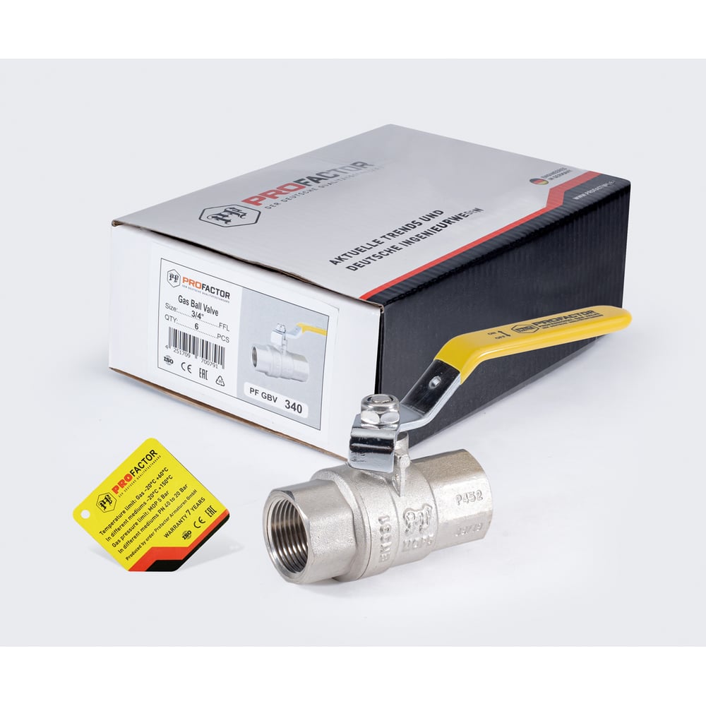 Шаровой кран для газа PROFACTOR PF GAS ручка рычаг, в/в 3/4 дюйма PF GBV 340