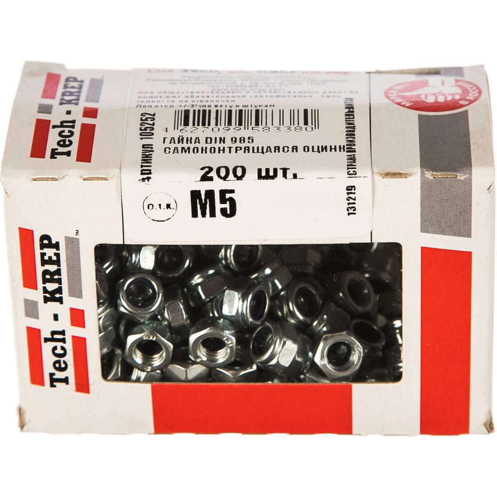 Самоконтрящаяся гайка DIN 985 оцинкованная М5, 200шт - коробка Tech-Krep 105252