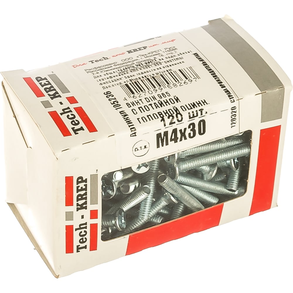 Винт DIN 965 с потайной головкой, оцинкованный М4х30, 120шт - коробка Tech-Krep 105236