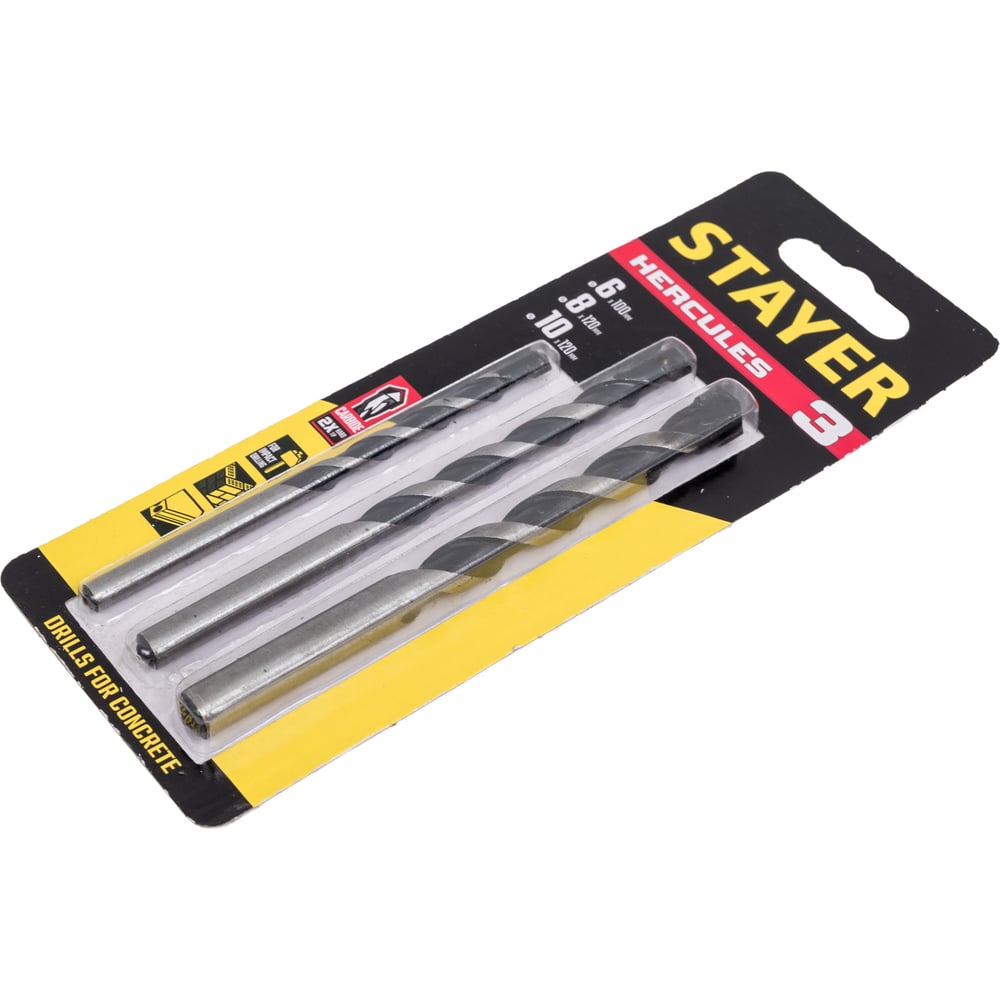 Набор сверл по бетону STAYER Hercules 3 шт, 6-8-10 мм 2915-H3_z01