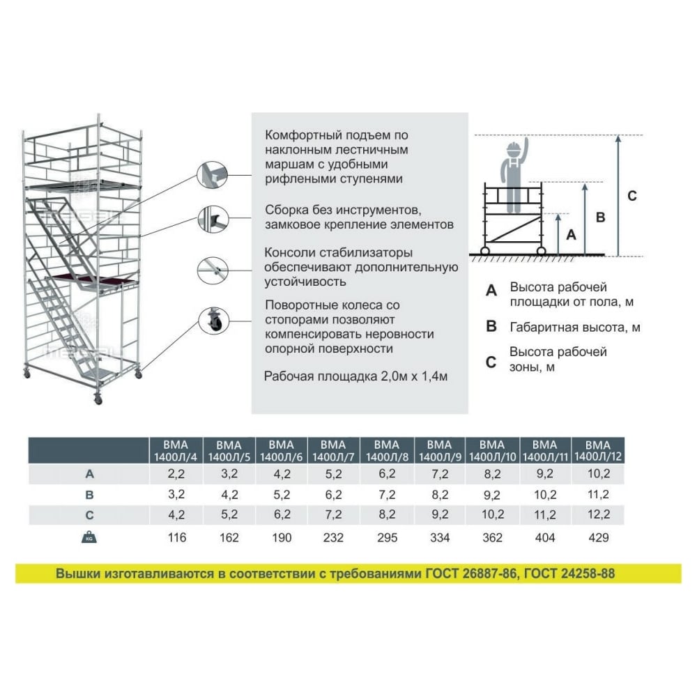 Модульная алюминиевая вышка MEGAL ВМА 1400Л/11 4687201843184
