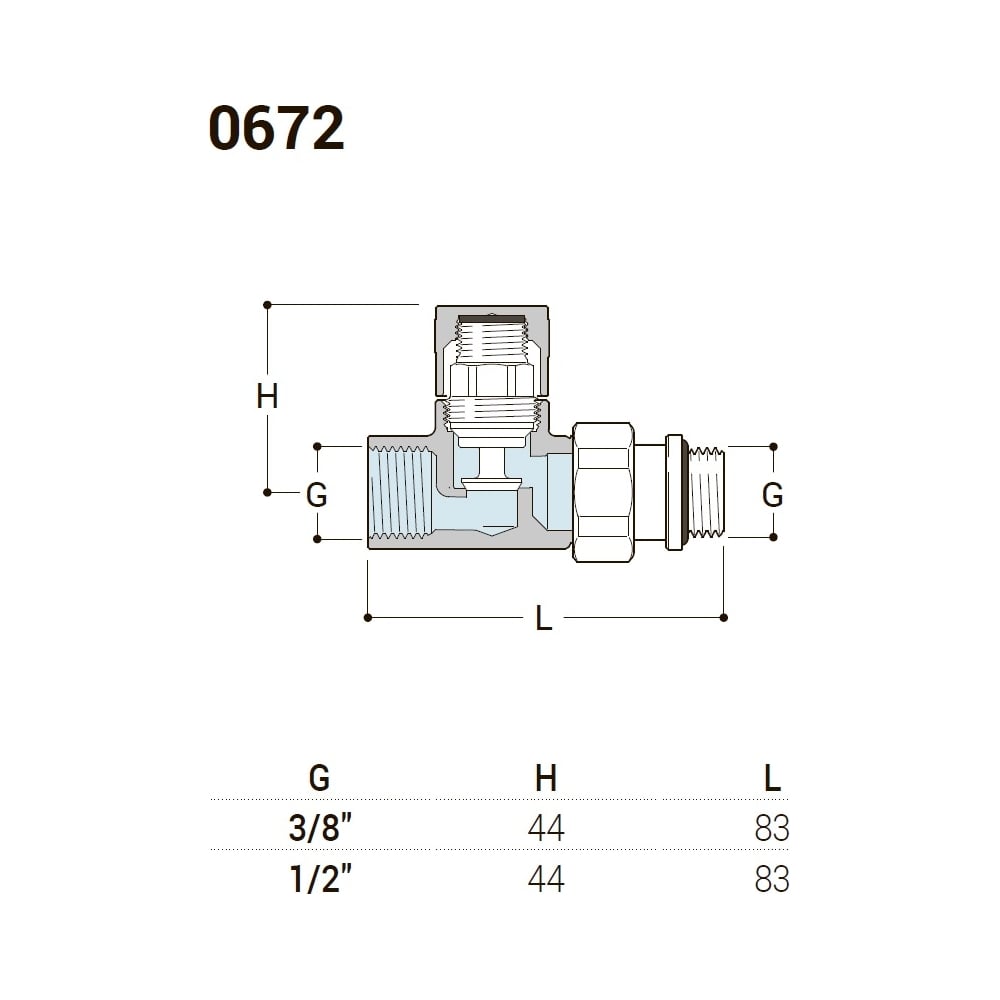 Прямой запорный клапан SR Rubinetterie 1/2", матовый хром 0672-1500CS00
