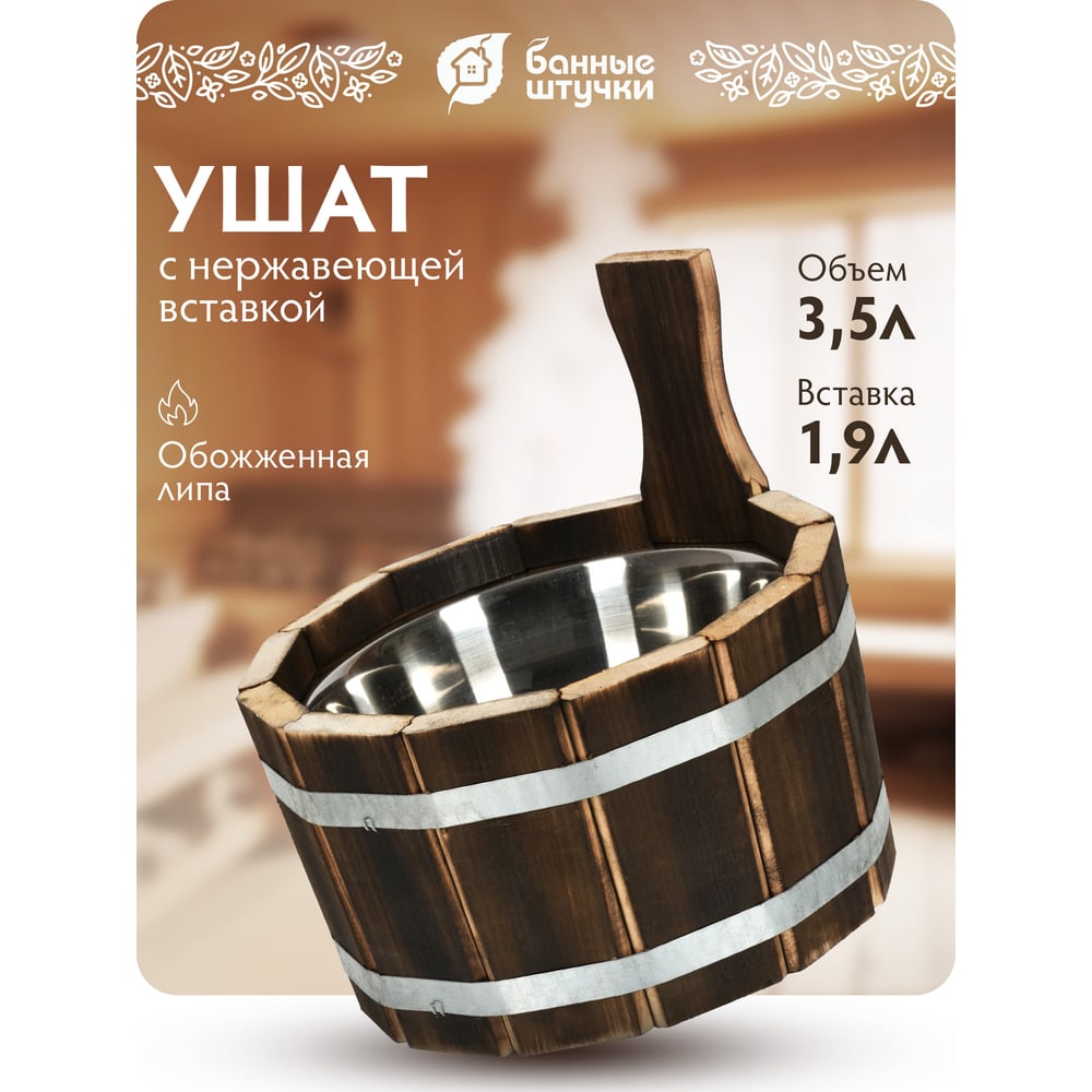 Ушат Банные Штучки шайка 3.5 л. с нержавеющей вставкой, обожжённая липа 33332