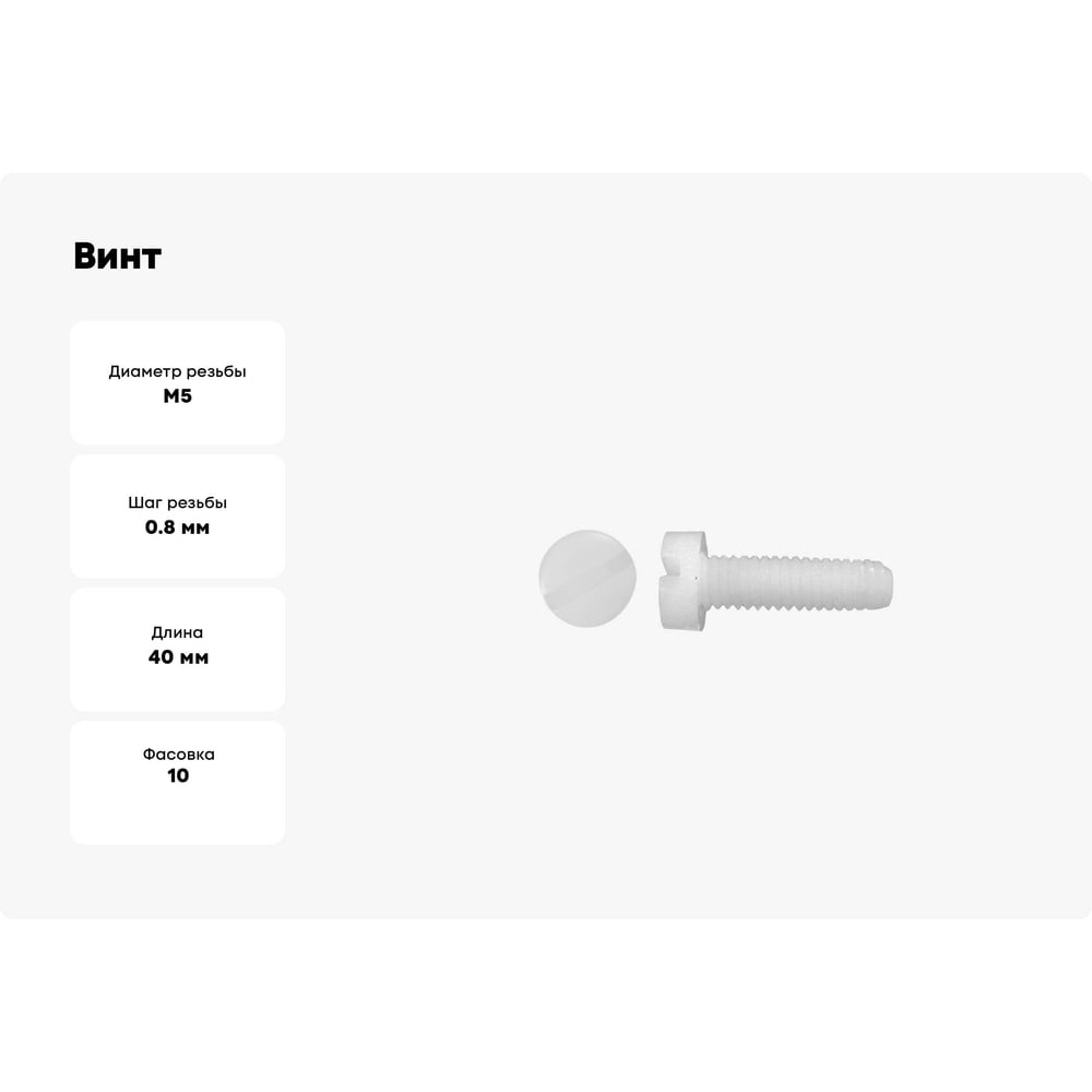 Винт с цилиндрической головкой со шлицем DINFIX DIN 84, полиамид (пластик), M5x40, 10 шт. 00-00001501
