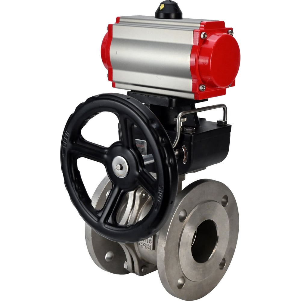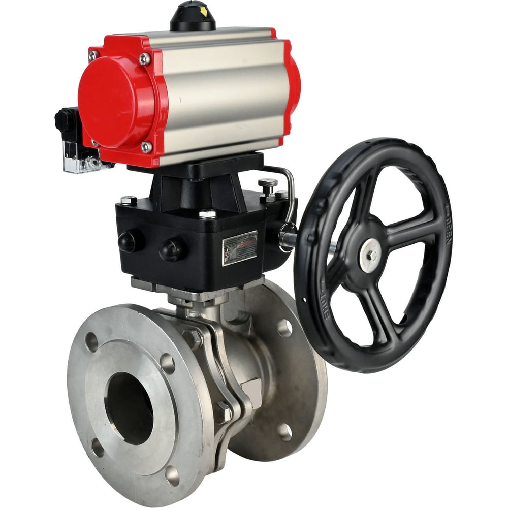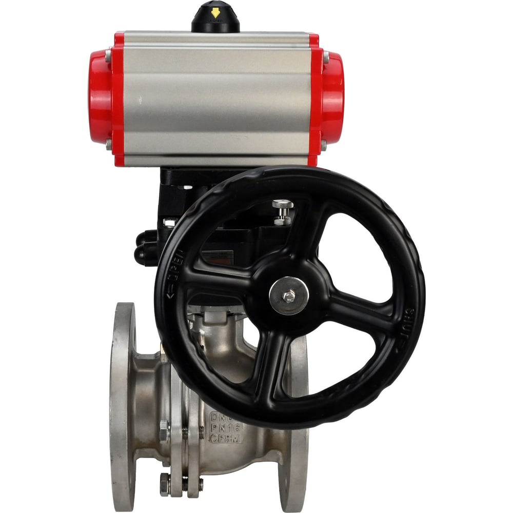 Шаровой кран DN.ru КШФП.316.200 Ду150 Ру16 с пневмоприводом, пневмораспределителем, дублером D160-01605