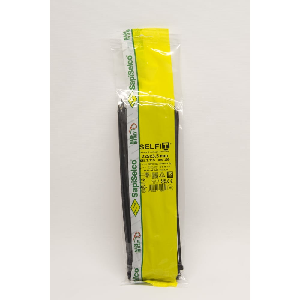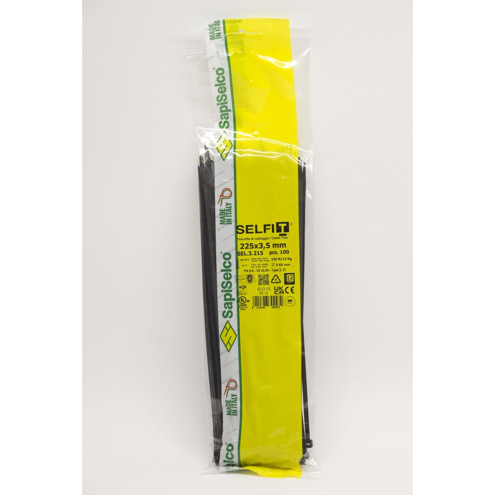 Стяжки черного цвета SapiSelco 3.5х225 мм, полиамид 6.6, уп. 100 шт. SEL.3.215R