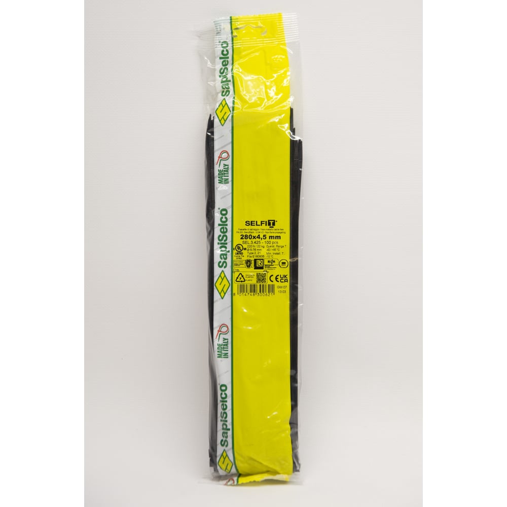Стяжки черного цвета SapiSelco 4.5х280 мм, полиамид 6.6, уп. 100 шт. SEL.3.425R