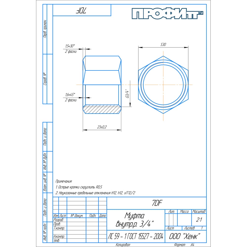 | Тип резьбы | 3/4F-3/4F |