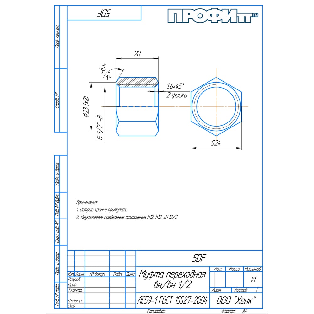 Латунная Муфта 1/2 ВР, 10 шт Профитт 9279271