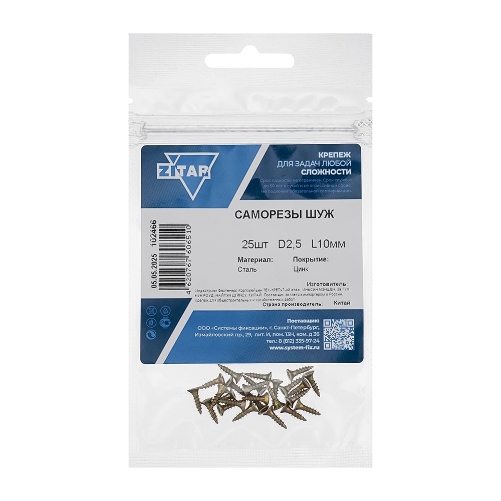 Саморез ШУж 2,5х10 потайная головка 25 шт, пакет Zitar 102466