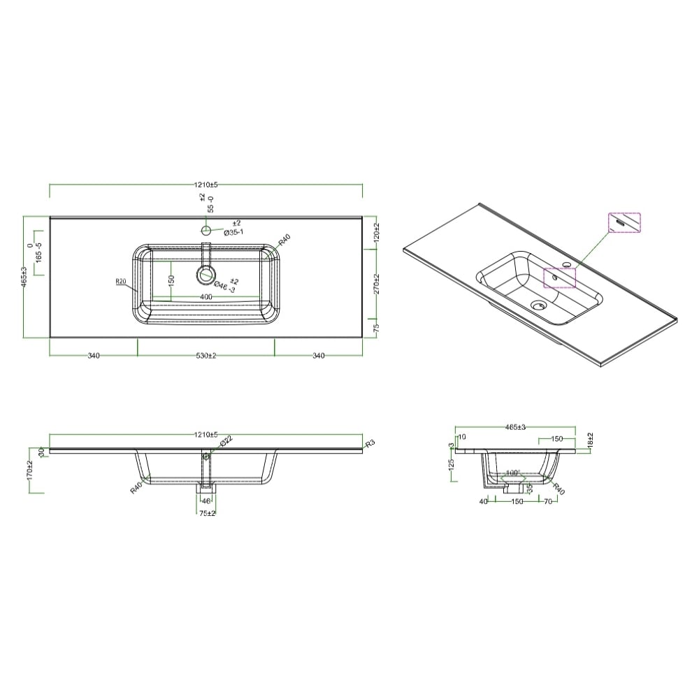 | Ширина раковины | 1210 мм |