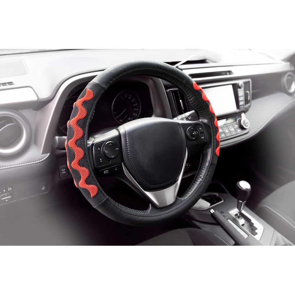 Оплетка KRAFT эко-кожа с резиновыми вставками, размер M, 38 см, черно-красная KT 800353