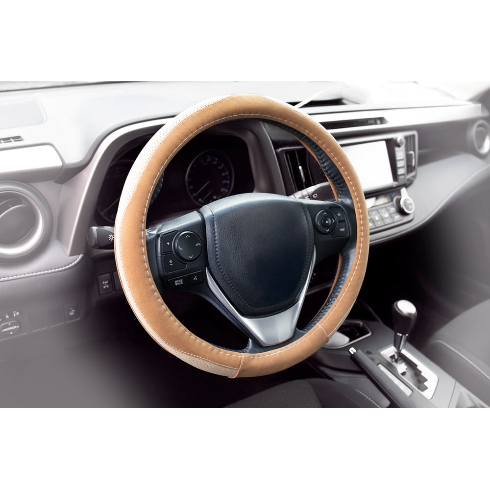 Оплетка KRAFT перфорированная эко-кожа + алькантара, размер M, 38 см, бежевая KT 800337