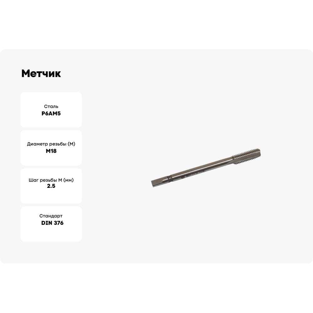 Метчик TLX М18,0 2,5x34x125 м/р.Р6АМ5 H2 удлиненный, проходной хв-к d14.0мм 66661